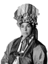 Person in weißem Hemd und roter Krawatte mit einer Papiertüte über dem Kopf, auf der ein lächelndes Gesicht ist.